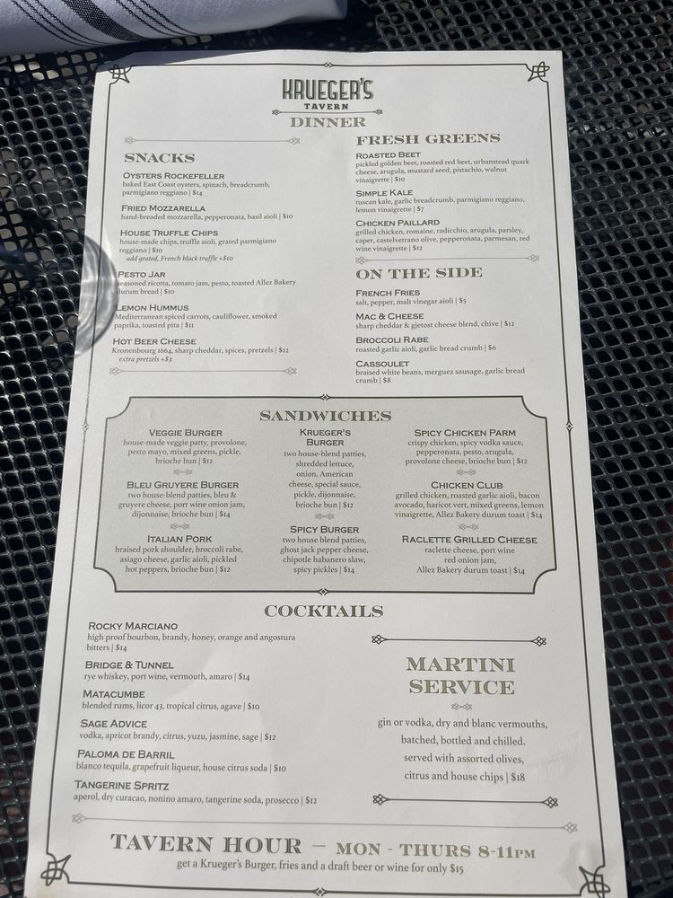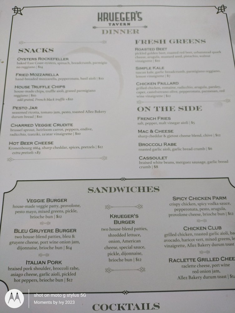 Krueger's Tavern in Cincinnati offers a diverse menu that caters to a wide range of preferences and dietary needs. From delicious burgers and American classics to vegan and vegetarian options, this restaurant has something for everyone. The cozy and hipster atmosphere, along with a full bar and happy hour specials, make it a great spot for social gatherings and casual dining. The menu includes fresh salads, flavorful side dishes like polenta cake and red beans and rice, and unique snacks such as hot beer cheese and sauerkraut balls. With amenities like outdoor seating, gender-neutral restrooms, and Wi-Fi, Krueger's Tavern provides a welcoming and inclusive dining experience. Don't miss out on their tasty dishes and vibrant ambiance!